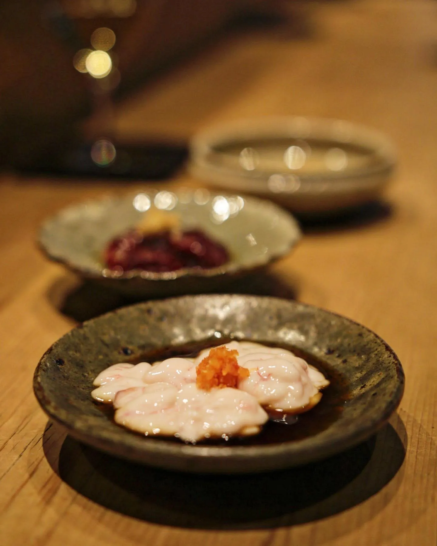 . 2025/06/17 . 『 鱈の白子 』 北海道、苫小牧産。 純白の身から放たれる艶がしっかりと期待に応えてくれる味わい。 ぽん酢と紅葉おろしを添えて。 #旬米 #新橋 #寿司 #鮨 #白子 #紅葉おろし #tokimeshi #shimbashi #sushilovers